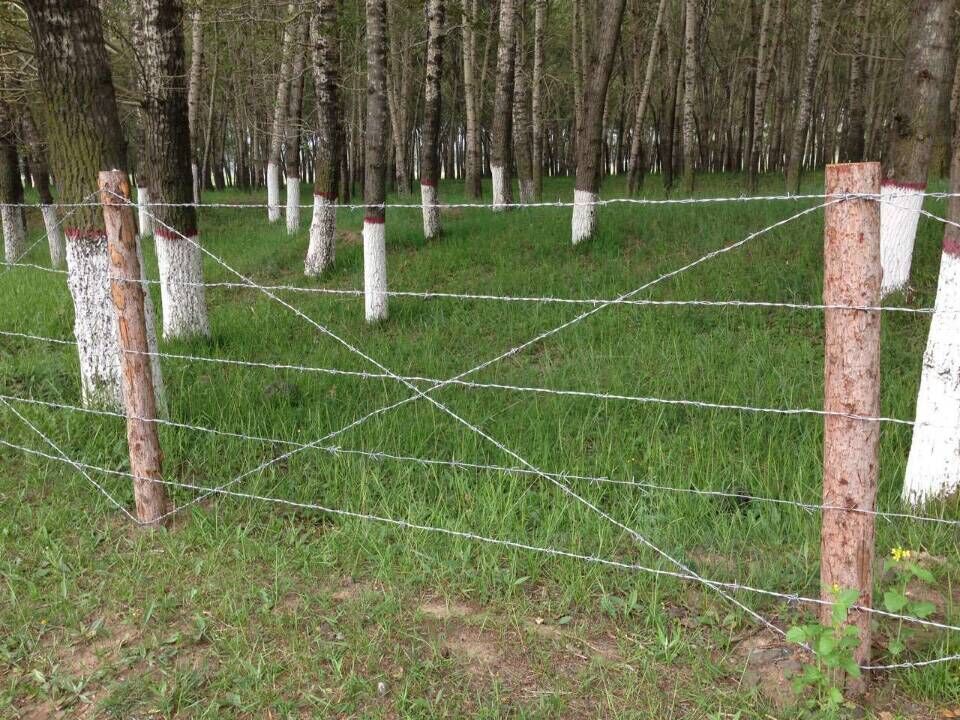 刺鐵絲網(wǎng)護(hù)欄上的刺繩是通過刺繩機(jī)械將帶刺的鐵絲纏繞在主絲(股絲)上面,經(jīng)過多種編織工藝而成的隔離護(hù)欄網(wǎng)。