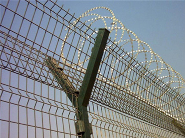 監獄防御圍網又稱作“Y型安全防御護網”監獄鋼網墻,是由V型支架立柱,加強型焊接片網,安全防盜連接件和熱鍍鋅刀片刺籠組成強度和安全防御性級別很高,近年來,被廣泛應用在監獄,機場,軍事基地等高安全場所。