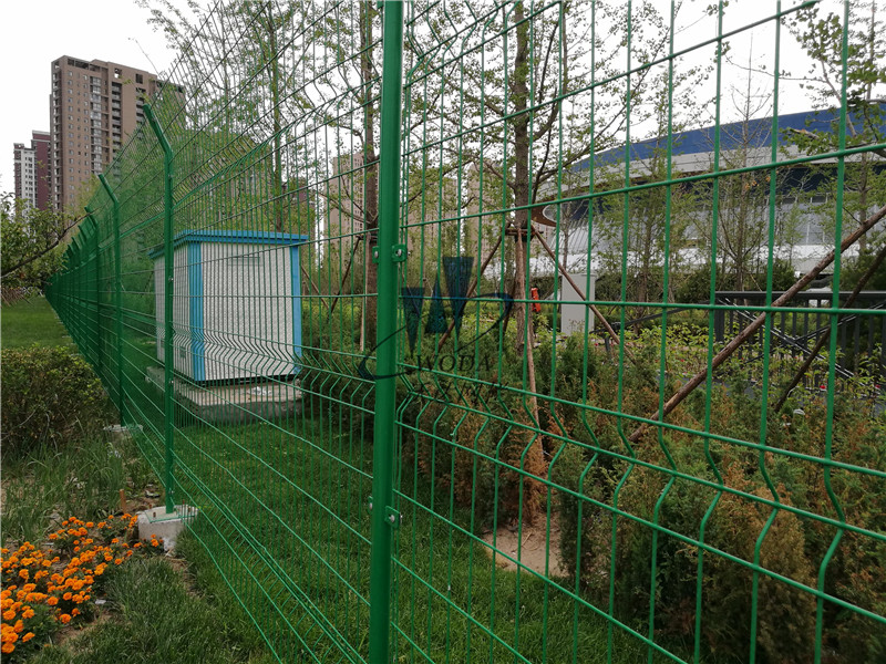 圍欄鐵絲網原料:常規采用直徑4mm優質低碳鋼絲點焊而成,絲徑尺寸范圍為3.5-6.0mm