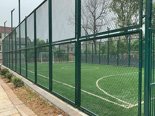 材質(zhì):pvc/pe包塑勾花網(wǎng),內(nèi)絲采用優(yōu)質(zhì)低碳鋼絲鍍鋅處理,外表進(jìn)行涂塑防腐處理。 生產(chǎn)工藝:編織焊接 表面處理:圍網(wǎng)采用PE/PVC包塑絲,立柱、邊框采用噴塑、浸塑處理 常用規(guī)格: 1.包塑絲經(jīng):3.8mm; 2.網(wǎng)孔:50mm×50mm;60mm×60mm; 3.尺寸:3000mm(寬度)*4000mm(高度)3000mm(寬度)*6000mm(高度) 4.立柱:直徑60mm圓管,壁厚2.5mm; 5.橫柱:直徑50mm圓管,壁厚2mm; 顏色:一般多采用墨綠色和草綠色,以墨綠色居多。 優(yōu)點(diǎn):美觀耐用、免維護(hù)、安裝簡單、有較好的防護(hù)、裝飾、美化效果。